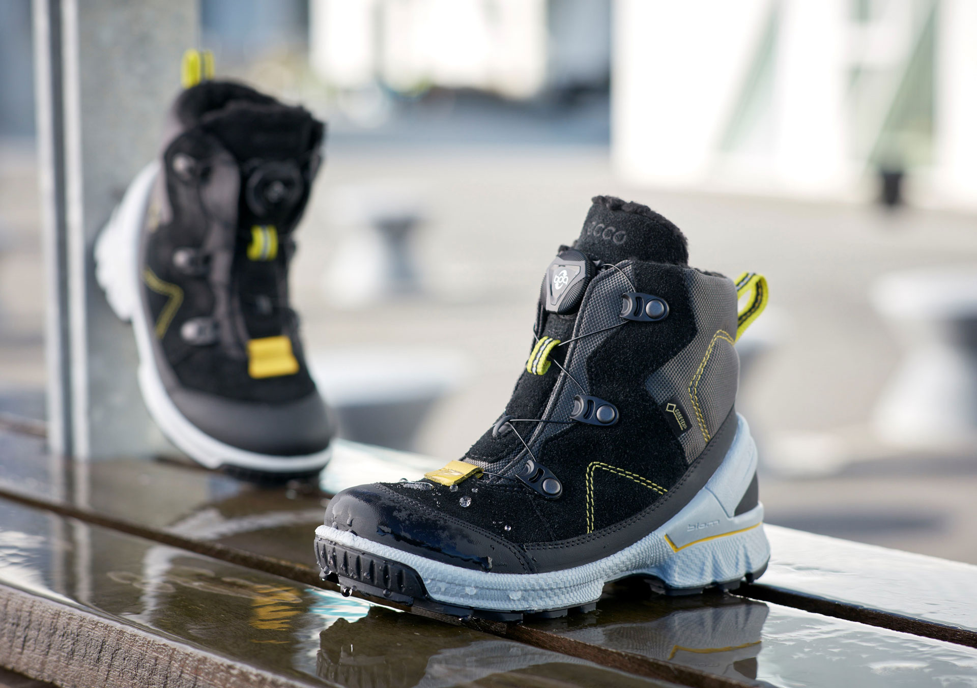 ECCO BIOM HIKE KIDS won The Scandinavian Outdoor Award Autumn/winter 2016 at ISPO, the world’s largest sports trade fair, because it supports the natural movement of the foot and fits like a glove on childrens’ feet according to the jury. The ECCO BIOM HIKE KIDS features the Boa® System (that allows the wearer to lace up the shoe only by twisting a knob), waterproof and breathable GORE-TEX® as well as a warm fur-like liner that keeps the feet dry and toasty. »The perfect winter boot for kids« according to the jury.