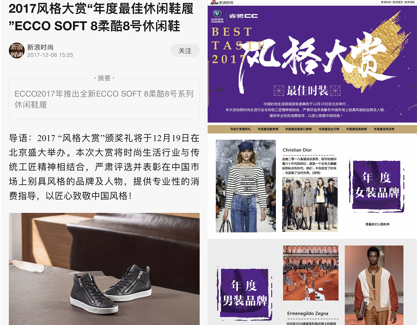 The winning of the 2017 Best Casual Shoes award coincides with ECCO’s 20th year in the Chinese market and is a testament to ECCO's advanced technology, innovative breakthroughs and devotion to the use of premium raw materials.